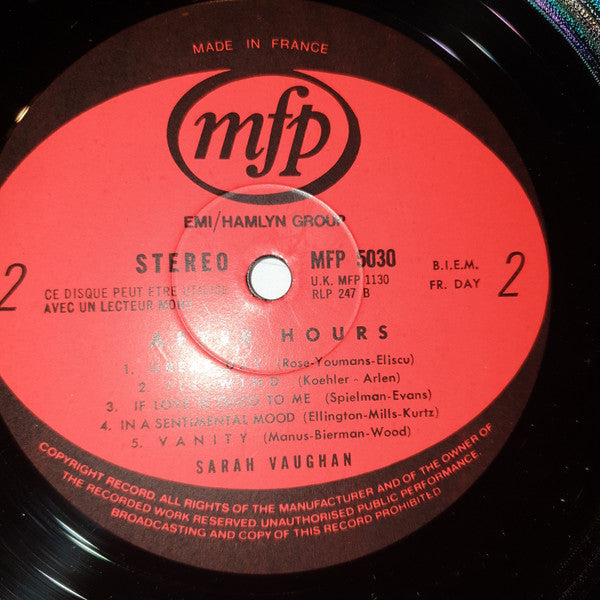 Sarah Vaughan With Mundell Lowe And George Duvivier - After Hours (LP, Album, RE)