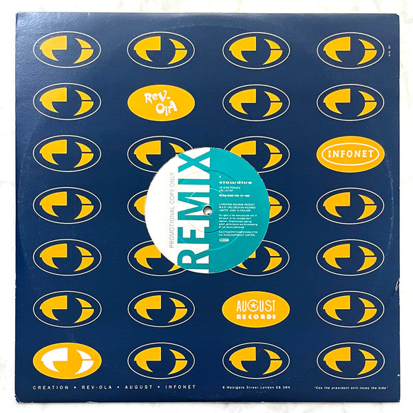 A Remixed at Bandulu Productions, London. B Remixed at Evolution Productions, Crewkerne. The above studio / company credits are not stated on this version but are taken from credits on the retail version of this release. Promo copy with different label printed with "PROMOTIONAL COPY ONLY" and issued in a dark blue die-cut Creation / Rev-Ola / August / Infonet 'promotional copy only' sleeve. Track durations not printed on this release. A Creation Records Product. Made in England.