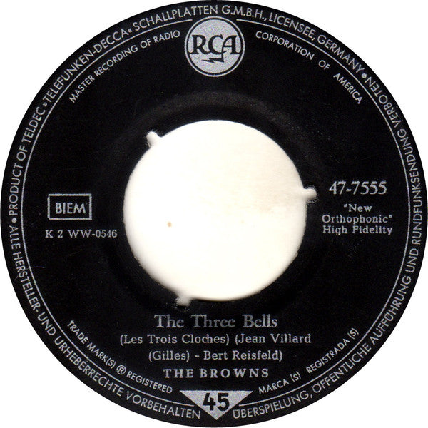 The Browns - The Three Bells / Heaven Fell Last Night (7", Single)