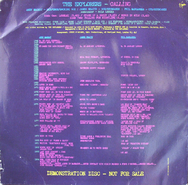 Side 1: Lorelei (3.42) / Stand up & Shout (3.23) / Venus De Milo (3.42)
