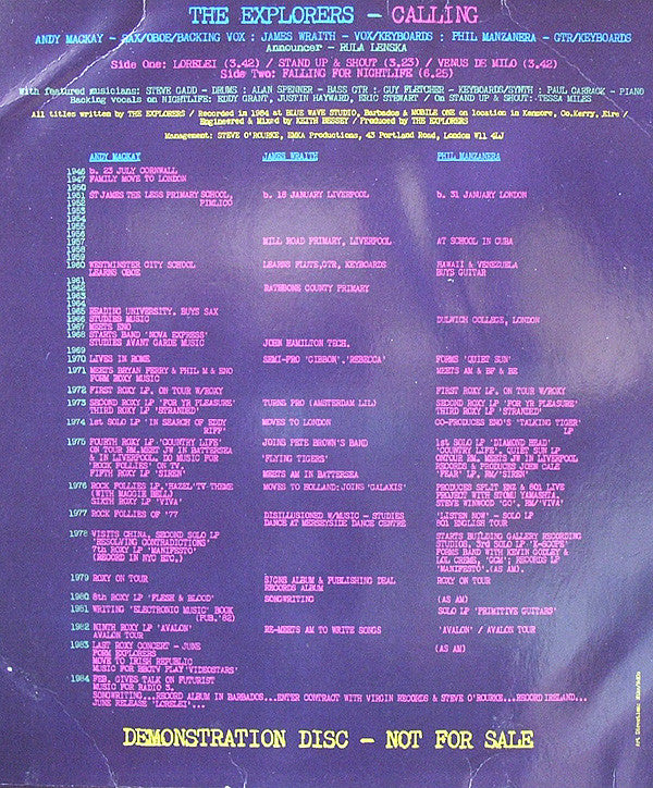 Recorded in 1984 in BLUE WAVE STUDIO, Barbados &
