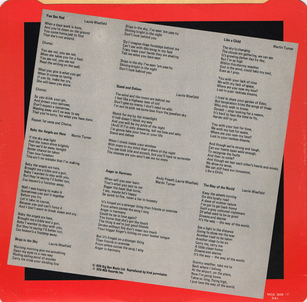 Made in W.-Germany (on back cover) P. 1978 MCA Records, Inc. (on label) A fourth track, "Stormy Weather," is listed for side two on the back cover instead of B3b. (wich is actually the subtitle of Way of the World, part 2)