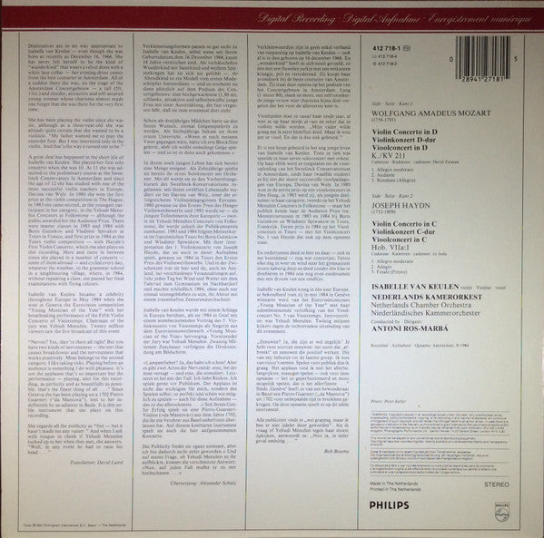 Wolfgang Amadeus Mozart / Joseph Haydn, Isabelle van Keulen, Netherlands Chamber Orchestra, Antoni Ros-Marbà - Violin Concerto No.2 In D, K.211 / Violin Concerto No.1 In C (LP, Album)