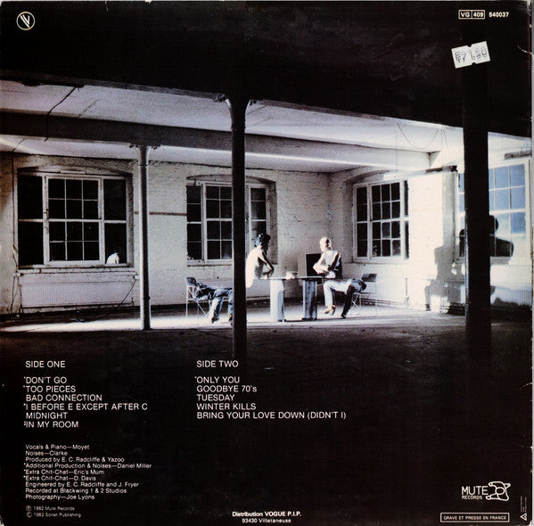 ℗ 1982 Mute Records © 1982 Sonet Publishing Distribution Vogue P.I.P. Track B1 misspelled on label as ''Only Your''. Issued with a die cut printed inner sleeve with lyrics The runouts are etched; M.P.P.V. is stamped.