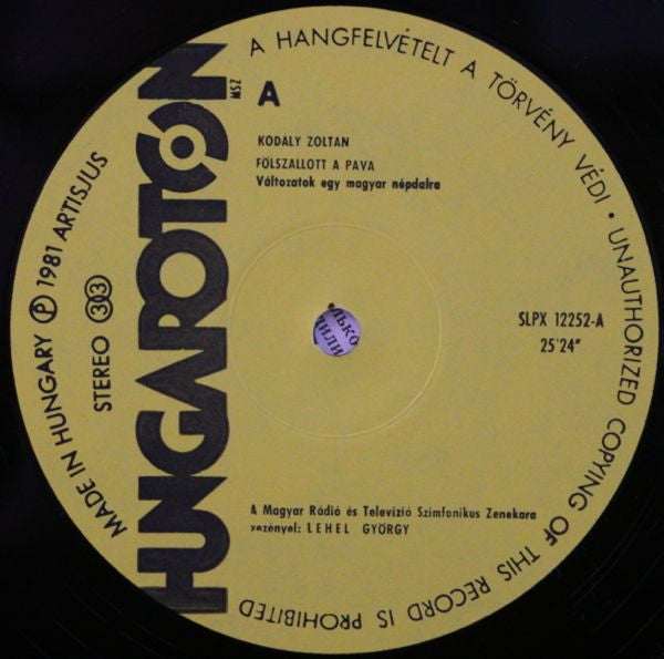 Zoltán Kodály, Budapest Symphony Orchestra · György Lehel - Peacock Variations / Galánta Dances / Marosszék Dances (LP)