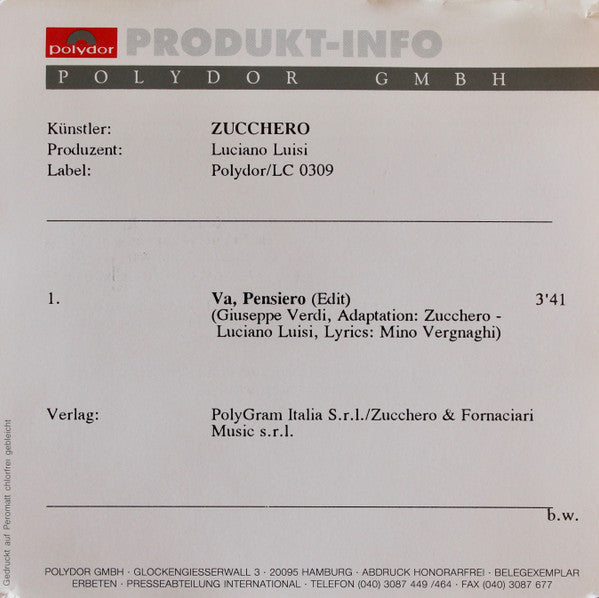 Zucchero - Va Pensiero (CD, Single, Promo)