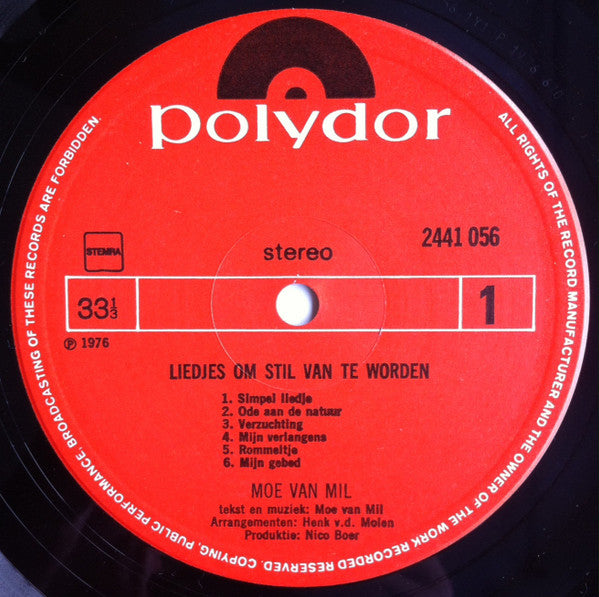Moe van Mil - Liedjes Om Stil Van Te Worden (LP, Album)