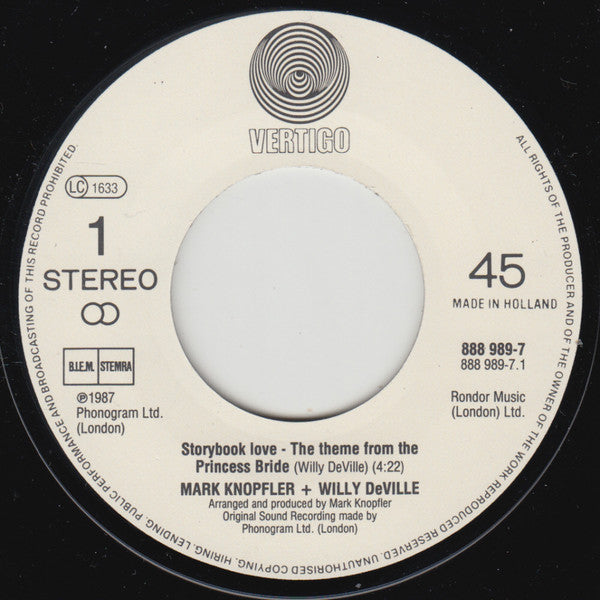 Mark Knopfler + Willy DeVille - Storybook Love (Theme From The Princess Bride) (7")