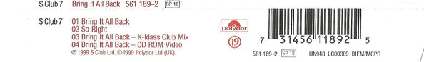 S Club 7 - Bring It All Back (CD, Single, Enh)
