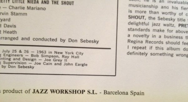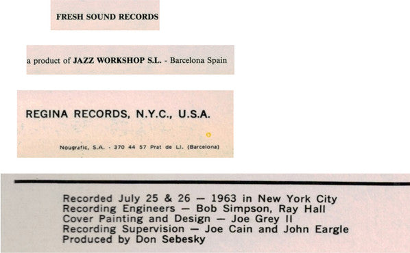 Record Company Regina Records Company Record Company Jazz Workshop S.L. Distributed By Fresh Sound Records Printed By Nougráfic, S.A.