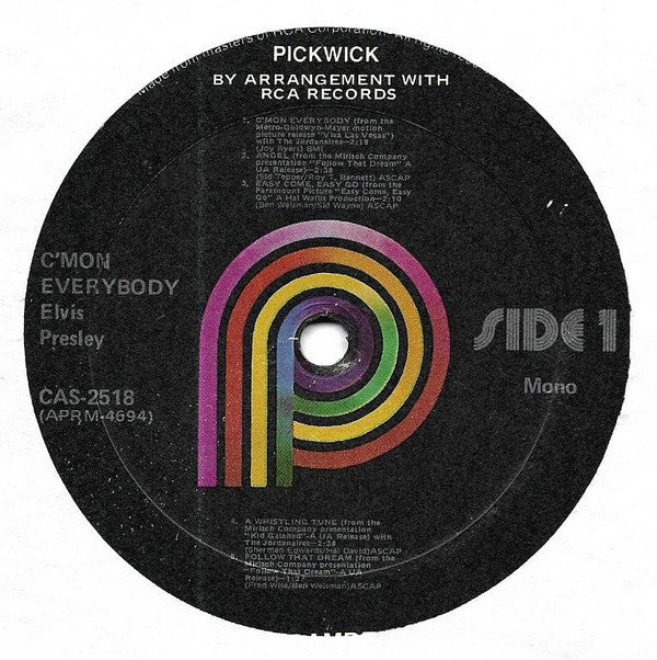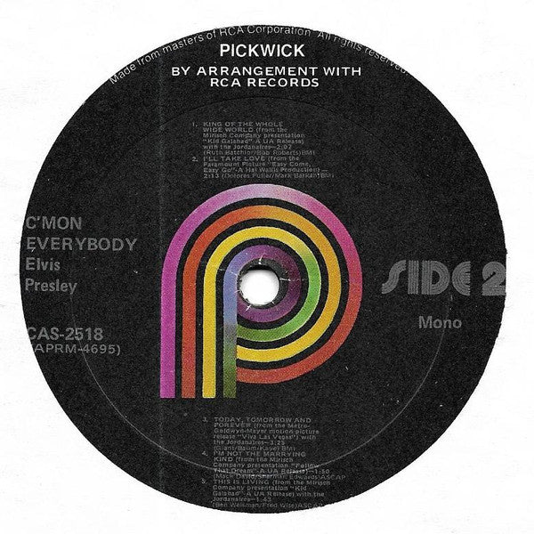 A1. C'mon Everybody 2:18 A2. Angel 2:38 A3. Easy Come, Easy Go 2:10 A4. A Whistling Tune 2:38 A5. Follow That Dream 1:37 B1. King Of The Whole Wide World 2:07 B2. I'll Take Love 2:13 B3. Today, Tomorrow And Forever 3:25 B4. I'm Not The Marrying Kind 1:50 B5. This Is Living 1:43