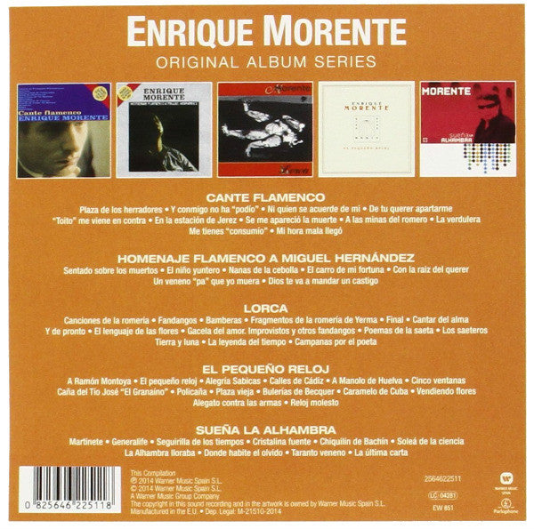 . Cante Flamenco 1-1. Plaza De Los Herradores 1-2. Y Conmigo No Ha "Podío" 1-3. Ni Quien Se Acuerde De Mí 1-4. De Tu Querer Apartame 1-5. "Toíto" Me Viene En Contra 1-6. En La Estación De Jerez 1-7. Se Me Apareció La Muerte 1-8. A Las Minas Del Romero 1-9. La Verdulera 1-10. Me Tienes "Consumío" 1-11. Mi Hora Mala Llegó . Homenaje Flamenco a Miguel Hernández 2-1. Sentado Sobre Los Muertos 2-2. El Niño Yuntero 2-3. Nanas De La Cebolla 2-4. El Carro De Mi Fortuna 2-5. Con la Raíz Del Querer 2-6. Un Veneno "Pa" Que Yo Muera 2-7. Dios Te Va A Mandar Un Castigo . Lorca 3-1. Canciones De La Romería 3-2. Fandangos 3-3. Bamberas 3-4. Fragmentos De La Romería De Yerma 3-5. Final 3-6. Cantar Del Alma 3-7. Y De Pronto 3-8. El Lenguaje De Las Flores 3-9. Gacela Del Amor Imprevistos Y Otros Fandangos 3-10. Poema De La Saeta 3-11. Los Saeteros 3-12. Tierra Y Luna 3-13. La Leyenda Del Tiempo 3-14. Campanas Por El Poeta . El Pequeño Reloj 4-1. A Ramón Montoya 4-2. El Pequeño Reloj 4-3. Alegría Sabicas 4-4. Calles De Cádiz 4-5. A Manolo De Huelva 4-6. Cinco Ventanas 4-7. Caña Del Tío José "El Granaino" 4-8. Policaña 4-9. Plaza Vieja 4-10. Bulerías De Becquer 4-11. Caramelo De Cuba 4-12. Vendiendo Flores 4-13. Alegato Contra Las Armas 4-14. Reloj Molesto . Sueña La Alhambra 5-1. Martinete 5-2. Generalife 5-3. Seguirilla De Los Tiempos 5-4. Cristalina Fuente 5-6. Chiquilín De Bachín 5-7. Soleá De La Ciencia 5-8. La Alhambra Lloraba 5-9. Donde Habite El Olvido 5-10. Taranto Veneno 5-11. La Última Carta