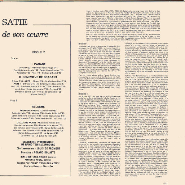 . Gymnopedies N°1 Et 3 . Trois Morceaux En Forme De Poire . La Belle Excentrique (Fantaisie Sérieuse) . En Habit De Cheval . Aperçus Desagreables . Parade . Genevieve De Brabant . Relache