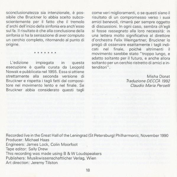 - Pages 15 to 18: Liner Notes in Italian (translation Decca 1993, credited to Claudio Maria Perselli)