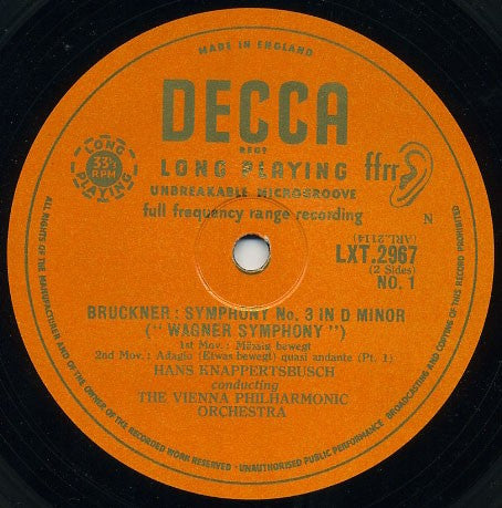 Anton Bruckner, Hans Knappertsbusch Conducting Wiener Philharmoniker - Symphony No. 3 In D Minor (LP, Mono)