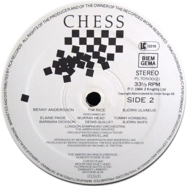 Benny Andersson, Tim Rice, Björn Ulvaeus - Chess (2xLP, Album)