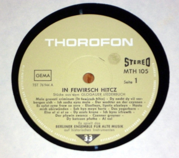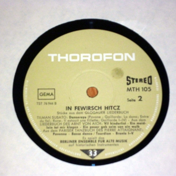 Berliner Ensemble Für Alte Musik - In Fewirsch Hitcz, Stücke aus dem Glogauer Liederbuch (LP)