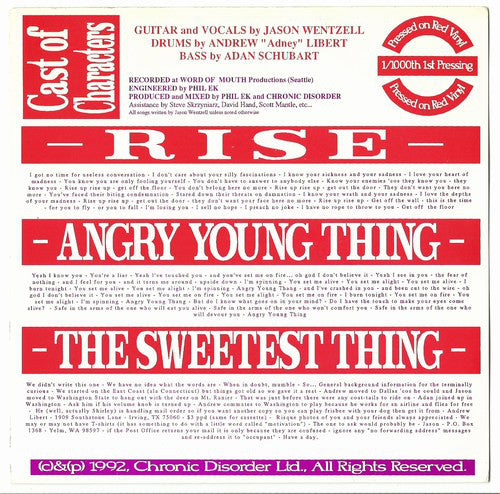 Pressed on Red vinyl. 1st pressing limited to 1000 copies. Catalog number taken from run-out grooves.