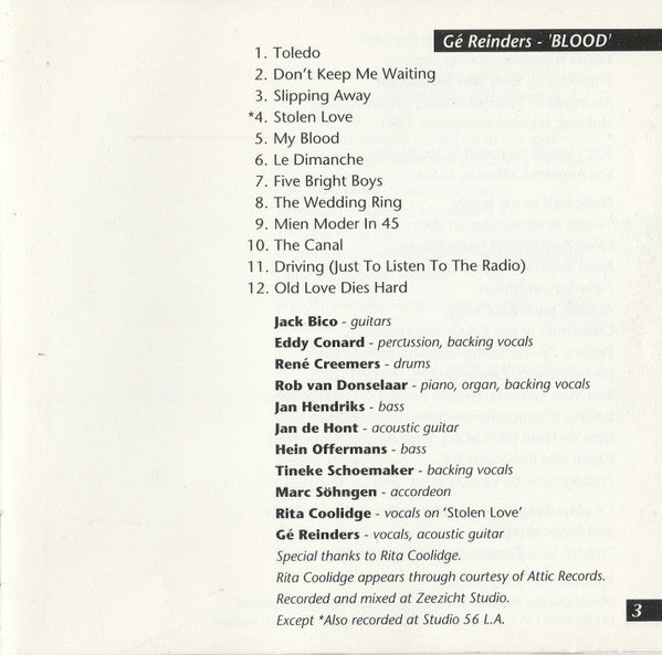 Gé Reinders - Blood (CD, Album)