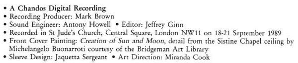 Recorded September 18-21, 1989 at St. Jude's Church, Central Square, London.