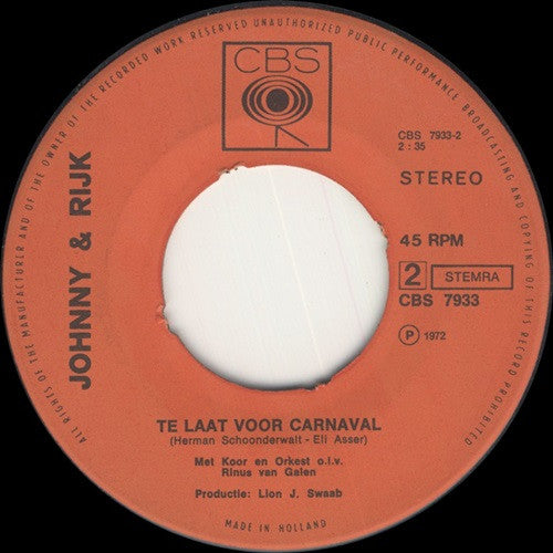 Johnny & Rijk - Jaapie, Jaapie (7", Single)