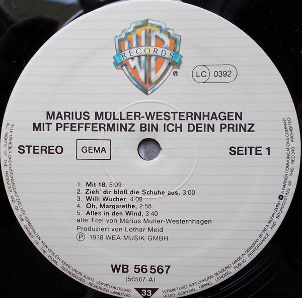 Marius Müller-Westernhagen - Mit Pfefferminz Bin Ich Dein Prinz (LP, Album)