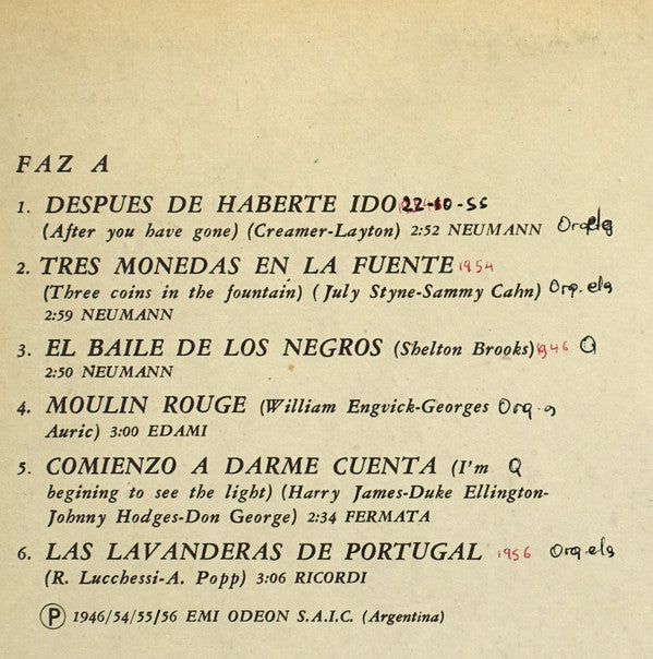 Phonographic Copyright (p) EMI-Odeon S.A.I.C.