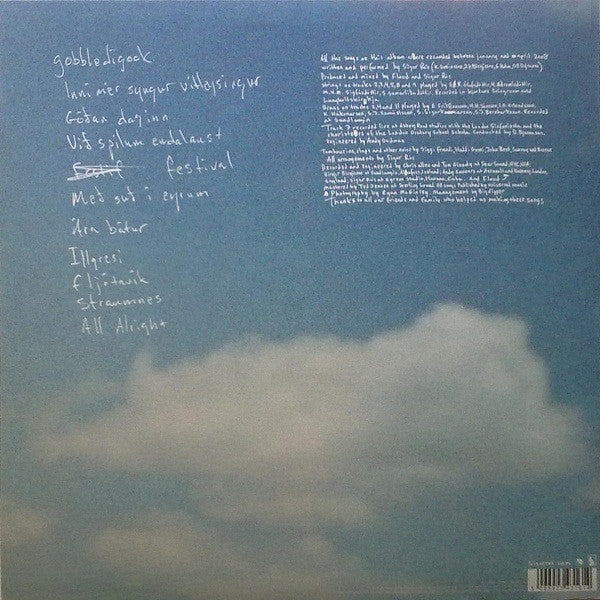 All the songs on this album were recorded between January and April 2008. Recorded and engineered at Sear Sound, NYC, USA; Sundlaugin, Álafoss, Iceland; Assault and Battery, London, England and Egrem Studio, Havana, Cuba. Track C1 recorded live at Abbey Road Studios. Strings on A2 to B1, C2 & D1 recorded in Kjartan's living room and Langholtskirkja. Brass on A2, A4 & D3 recorded at Sundlaugin. Mastered at Sterling Sound. All songs published by Universal Music. Thanks to all our friends and family who helped us making these songs. ℗ 2008 the copyright in this sound recording is owned by Sigur Rós under exclusive licence to EMI Records Ltd. © 2008 EMI Records Ltd. Made in EU.