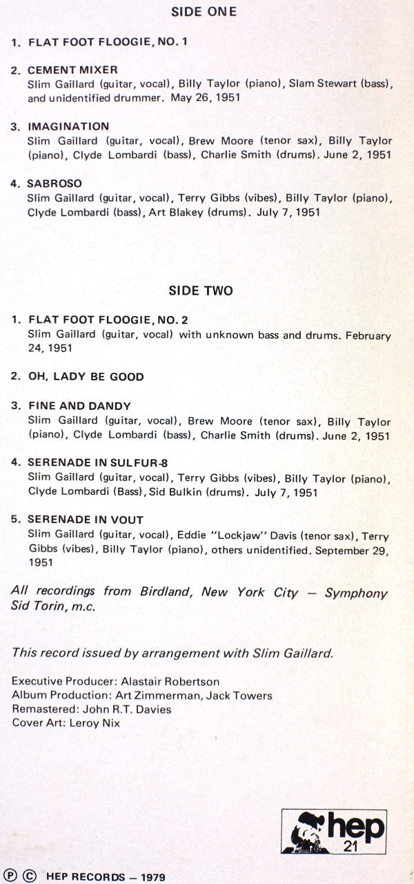 Slim Gaillard - At Birdland (LP, Album, Mono)