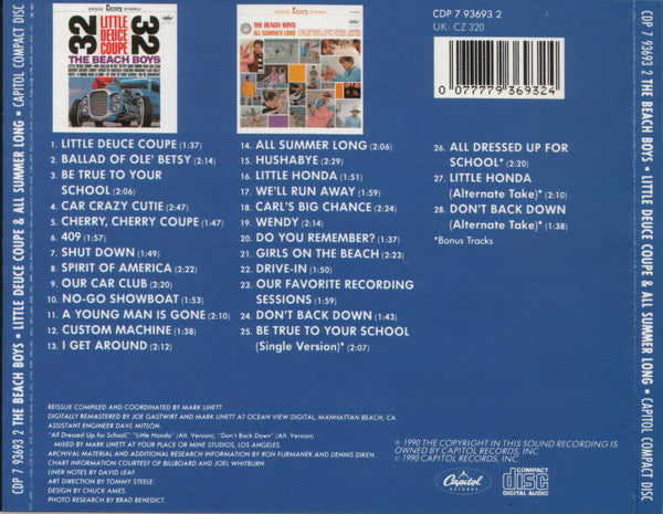 Re-release of the albums 'Little Deuce Coupe' (tracks 1-12) originally released October 7, 1963, and 'All Summer Long' (tracks 13-24) originally released July 1, 1964. Also included are 4 bonus tracks.