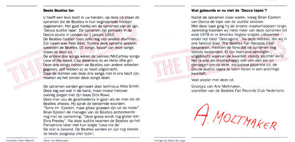 The booklet contains a small history of the "Decca Tapes" written up by the then head of the Paul McCartney Club in the Netherlands to add to the curiosity of this release.