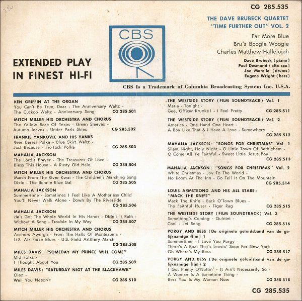 The Dave Brubeck Quartet - Time Further Out, Vol. 2 (Miro Reflections) (7", EP)