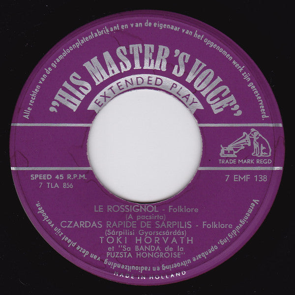 Toki Horvath Et Sa Banda De La Puzsta Hongroise - Toki Horvath (7", EP, Gre)