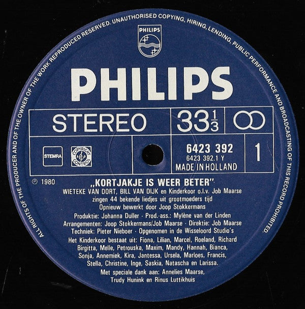 Wieteke van Dort, Bill van Dijk, Kinderkoor o.l.v. Job Maarse - Kortjakje Is Weer Beter (LP)