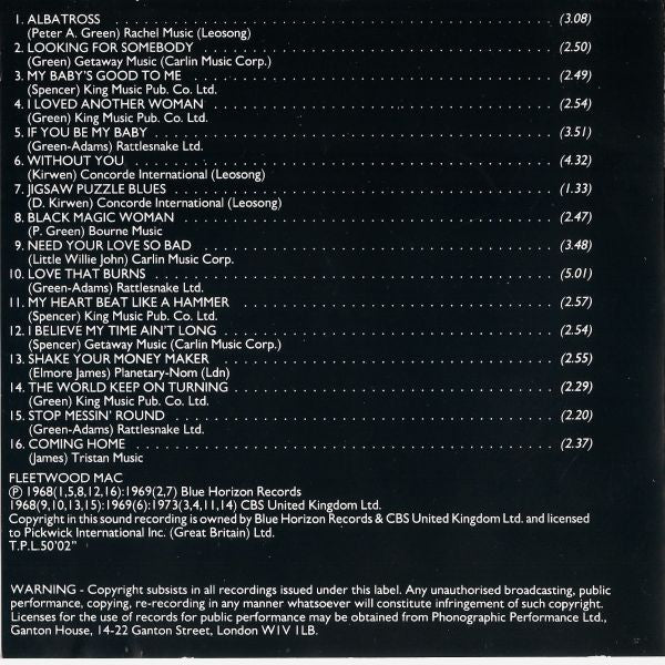 Copyright in this sound recording is owned by Blue Horizon Records & CBS United Kingdom Ltd and licensed to Pickwick International Inc. (Great Britain) Ltd.