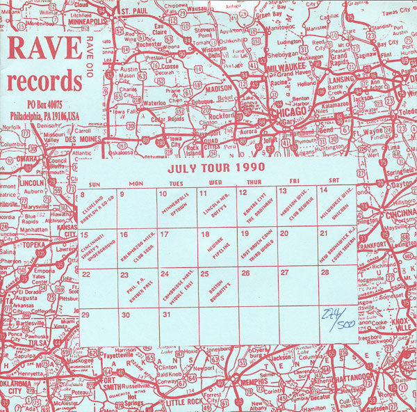 Rave 010: 1000 copies, 4 bands, 4 songs, 2 colors, 1 large spike in the throat and out the mouth. $5.50 PPD.