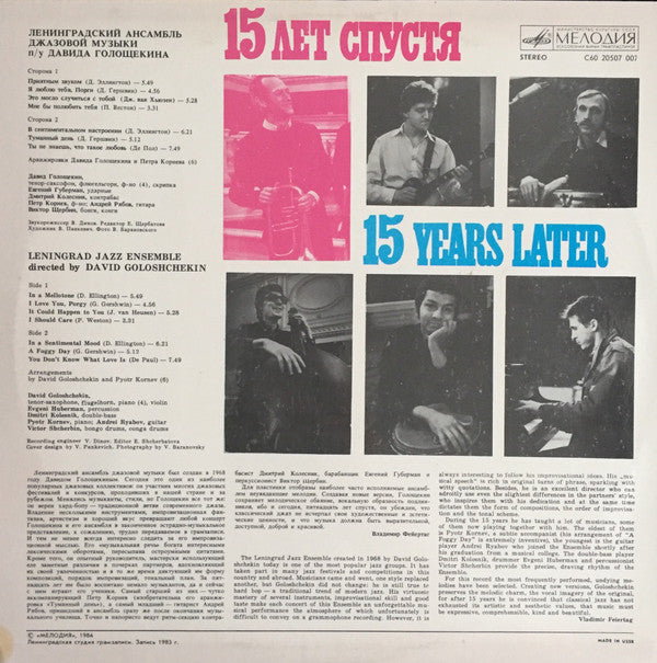 Джаз-ансамбль Давида Голощекина - 15 Лет Спустя = 15 Years Later (LP, Album)