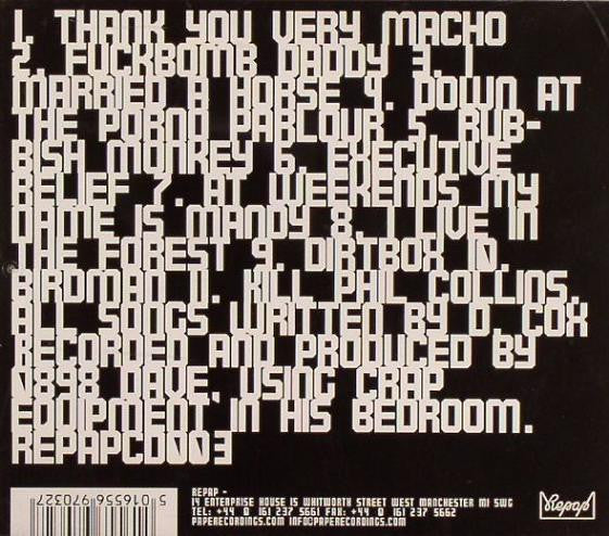 1. Thank You Very Macho 2. Fuckbomb Daddy 3. I Married A Horse 4. Down At The Porno Parlour 5. Rubbish Monkey 6. Executive Relief 7. At Weekends My Name Is Mandy 8. I Live In The Forest 9. Dirtbox 10. Birdman 11. Kill Phil Collins