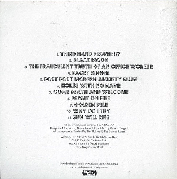 1. Third Hand Prophecy 4:082. Black Moon 3:453. The Fraudulent Truth Of An Office Worker 4:164. Pacey Singer 3:455. Post Post Modern Anxiety Blues 3:526. Horse With No Name 3:547. Come Death And Welcome 3:248. Bedsit On Fire 2:589. Golden Mile 3:3710. Why Do I Try 2:2111.1. Sun Will Rise 5:3111.2. Untitled 3:44