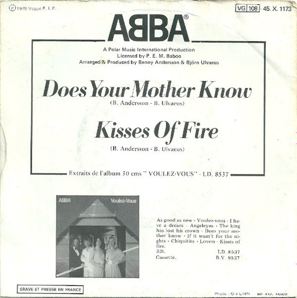 A. Does Your Mother Know 3:13B. Kisses Of Fire 3:16