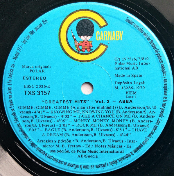 A1. Gimme! Gimme! Gimme! (A Man After Midnight) A2. Knowing Me, Knowing You A3. Take A Chance On Me A4. Money, Money, Money A5. Rock Me A6. Eagle A7. Estoy Soñando = I Have A Dream B1. Dancing Queen B2. Does Your Mother Know B3. Chiquitita (Version Española) B4. Summer Night City B5. I Wonder (Departure) B6. The Name Of The Game B7. Thank You For The Music