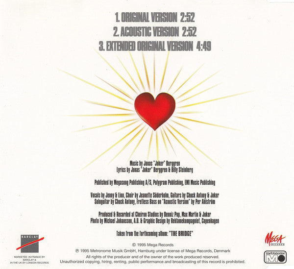 Copyright (c) Mega RecordsPhonographic Copyright (p) Metronome Musik GmbHLicensed From Mega RecordsMarketed By BarclayMarketed By London RecordsMade By PMDC, GermanyPublished By Megasong PublishingPublished By Polygram Music Publishing Ltd.Published By EMI Music Publishing Ltd.Produced At Cheiron StudiosRecorded At Cheiron StudiosData provided by Discogs