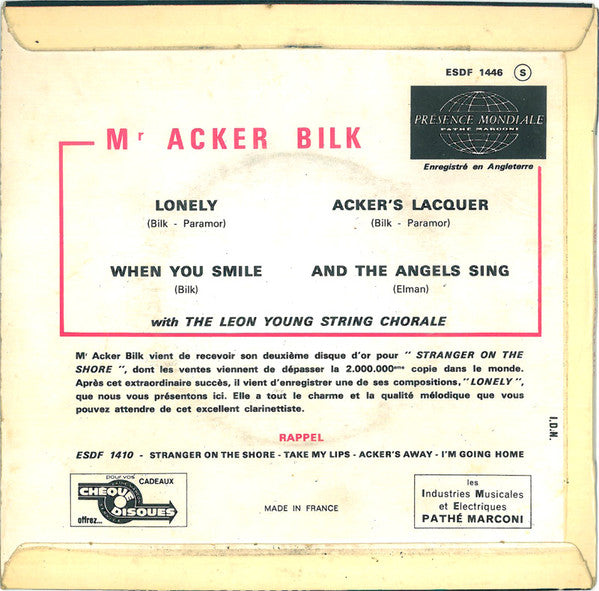 A1. Acker Bilk, The Leon Young String Chorale - Lonely 2:56 A2. Acker Bilk, The Leon Young String Chorale - When You Smile 2:23 B1. Acker Bilk, The Leon Young String Chorale - Acker's Lacquer 2:56 B2. Acker Bilk, The Leon Young String Chorale - And The Angels Sing 2:48