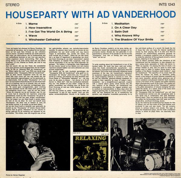 A1. Mame 2:25 A2. How Insensitive 3:10 A3. I've Got The World On A String 4:07 A4. Wave 3:30 A5. Winchester Cathedral 2:45 B1. Meditation 3:39 B2. On A Clear Day 3:30 B3. Satin Doll 3:25 B4. Who Knows Why 4:35 B5. The Shadow Of Your Smile 2:43