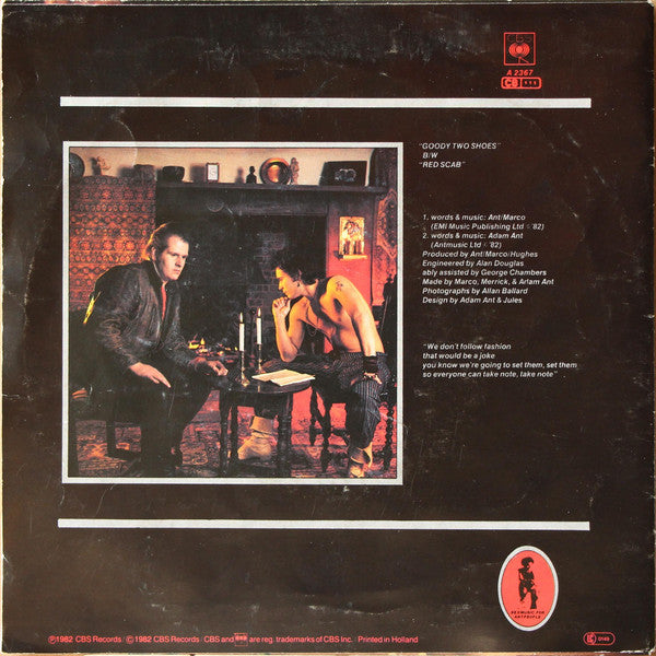 Record Company CBS Inc. Phonographic Copyright (p) CBS Records Copyright (c) CBS Records Pressed By CBS, Haarlem Published By EMI Music Publishing Ltd. Published By Ant Music Ltd.