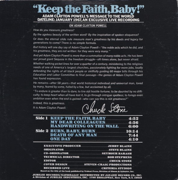 "Adam Clayton Powell's message to the world. Dateline: January 1967, an exclusive live recording"