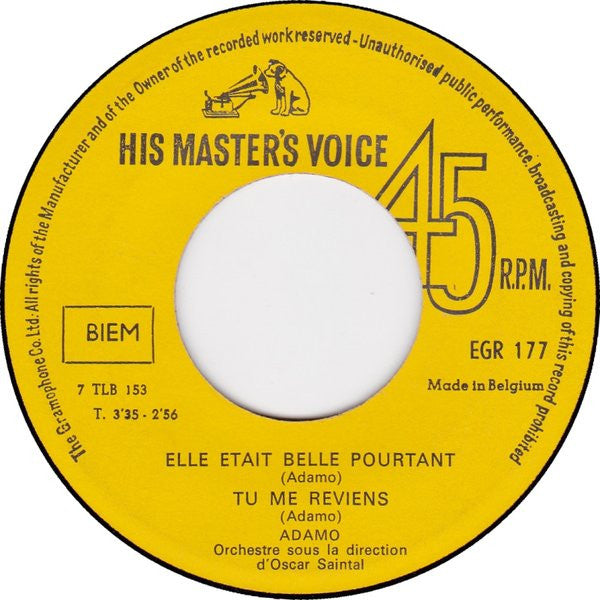 A1. Elle Etait Belle Pourtant 3:35 A2. Tu Me Reviens 2:56 B1. Ton Nom 2:30 B2. Du Soleil, Du Boulot 3:30