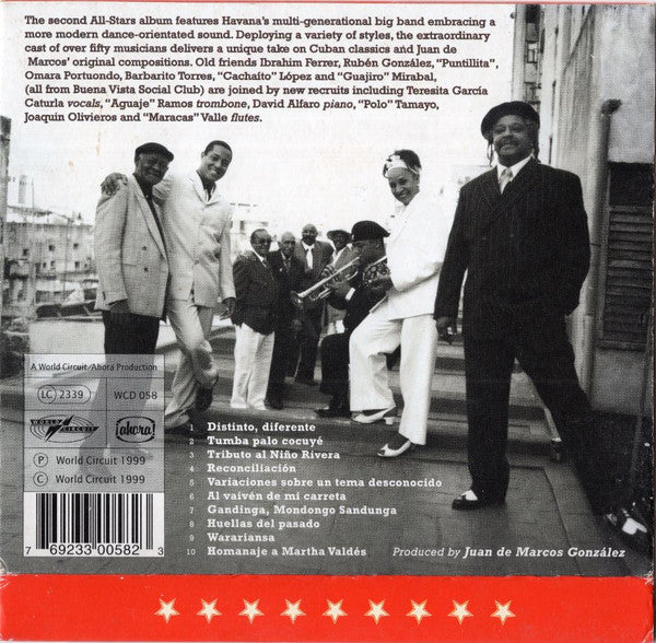 1. Distinto, Diferente 7:002. Tumba Palo Cocuyé 6:473. Tributo Al Niño Rivera 5:524. Reconciliación 7:405. Variaciones Sobre Un Terma Desconocido 5:396. Al Vaivén De Mi Carreta 7:417. Gandinga, Mondongo Sandunga 5:408. Huellas Del Pasado 5:209. Warariansa 5:4810. Homanje A Martha Valdés 4:35