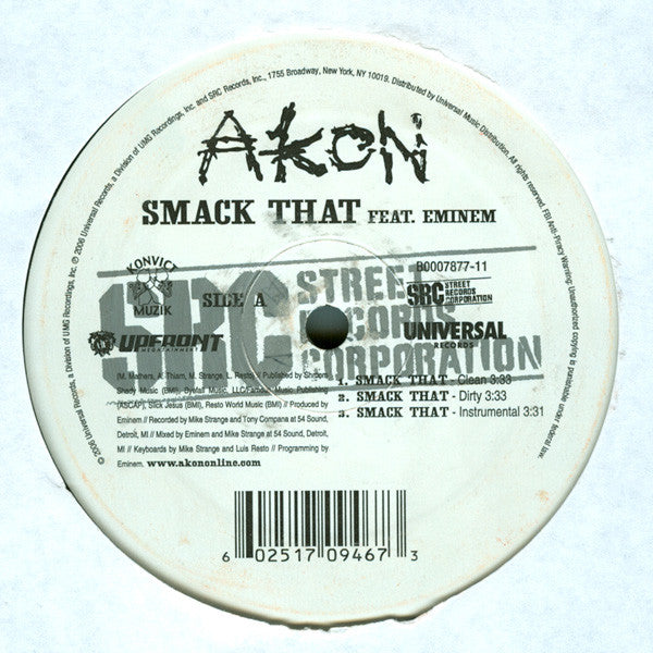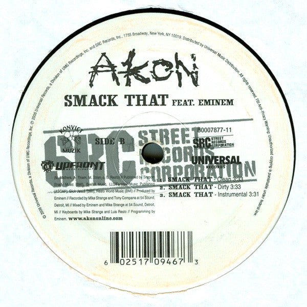 A1. Smack That (Clean) 3:33 A2. Smack That (Dirty) 3:33 A3. Smack That (Instrumental) 3:31 B1. Smack That (Clean) 3:33 B2. Smack That (Dirty) 3:33 B3. Smack That (Instrumental) 3:31