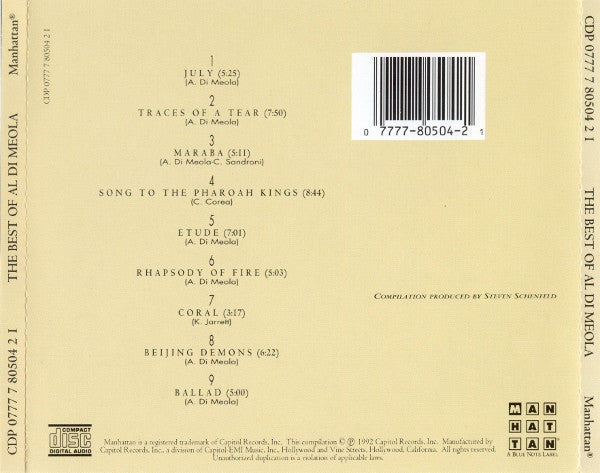 Phonographic Copyright (p) Capitol Records, Inc. Copyright (c) Capitol Records, Inc. Manufactured By Capitol Records, Inc. Glass Mastered At EMI Swindon Pressed By EMI Uden
